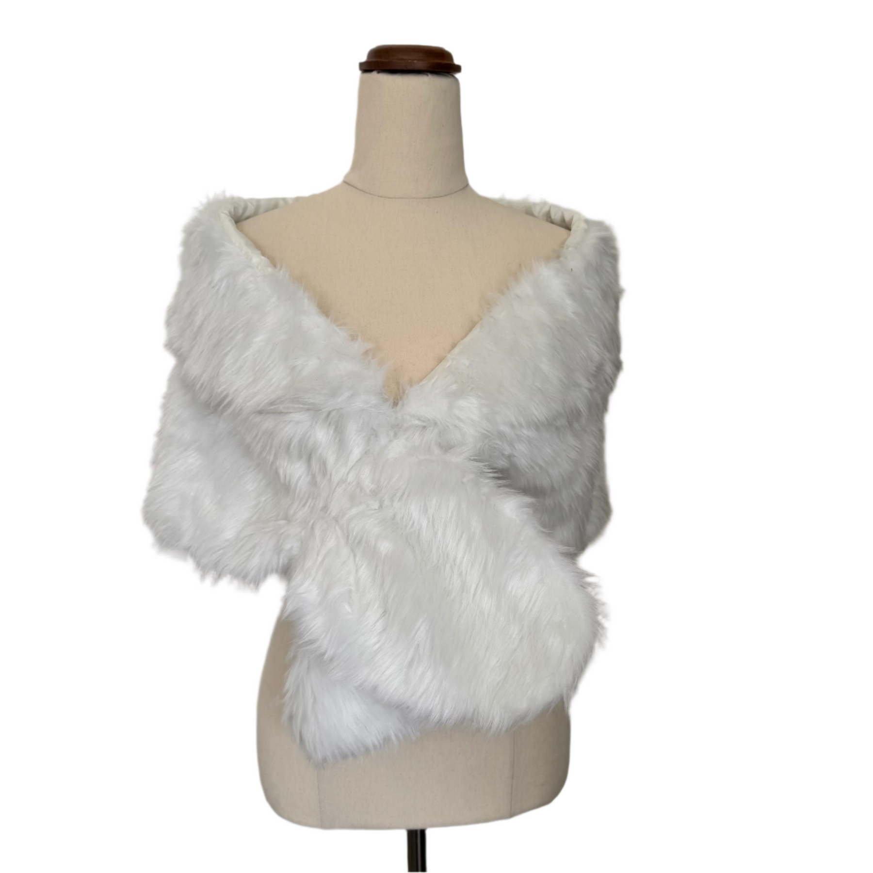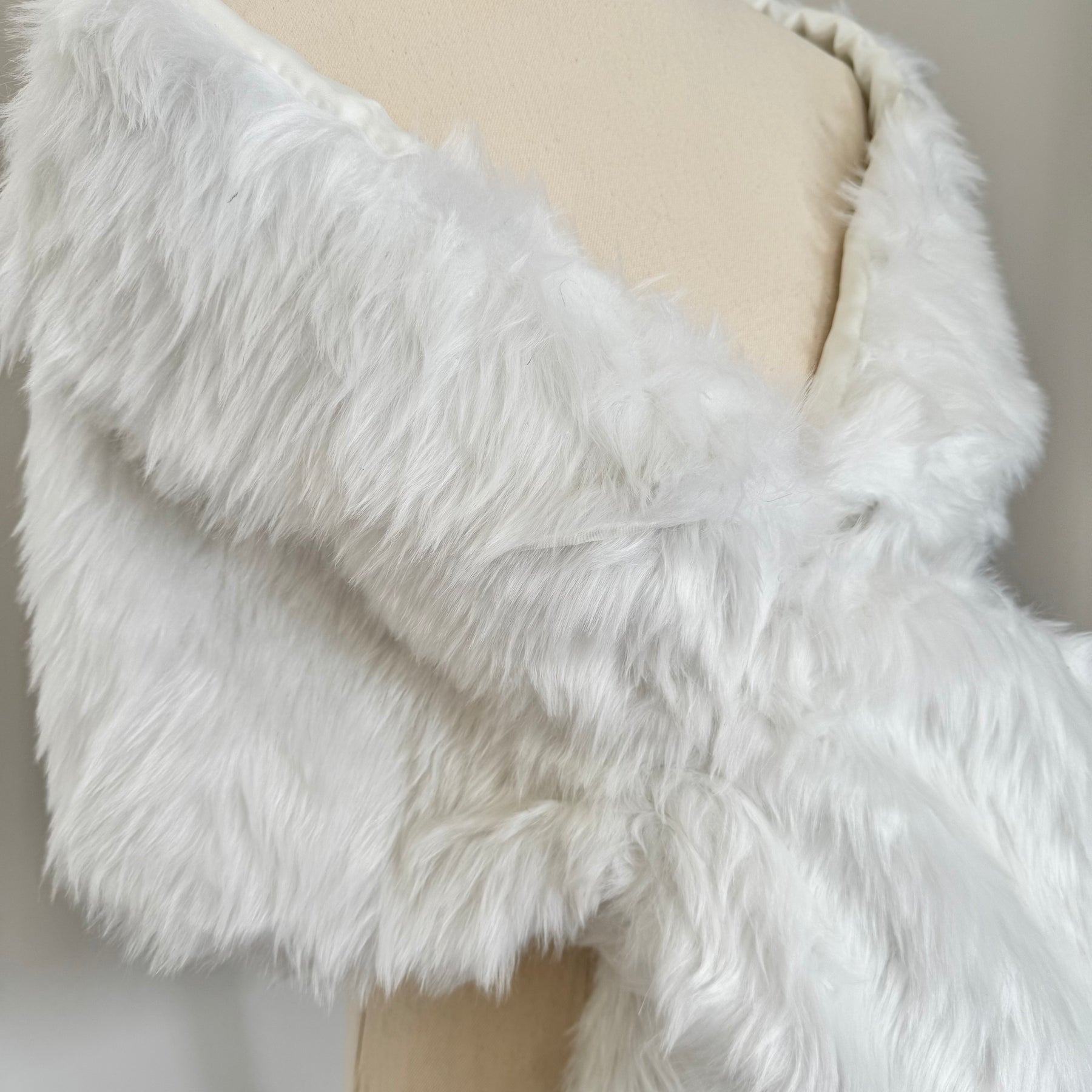 Great as a Winter wedding accessory or any special occasion. The faux fur collar has a hook to fasten it.
