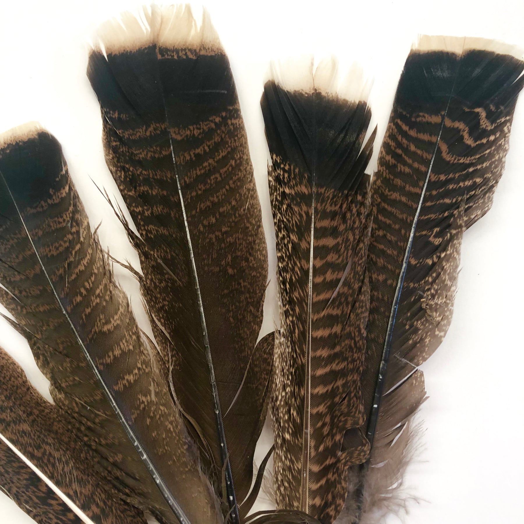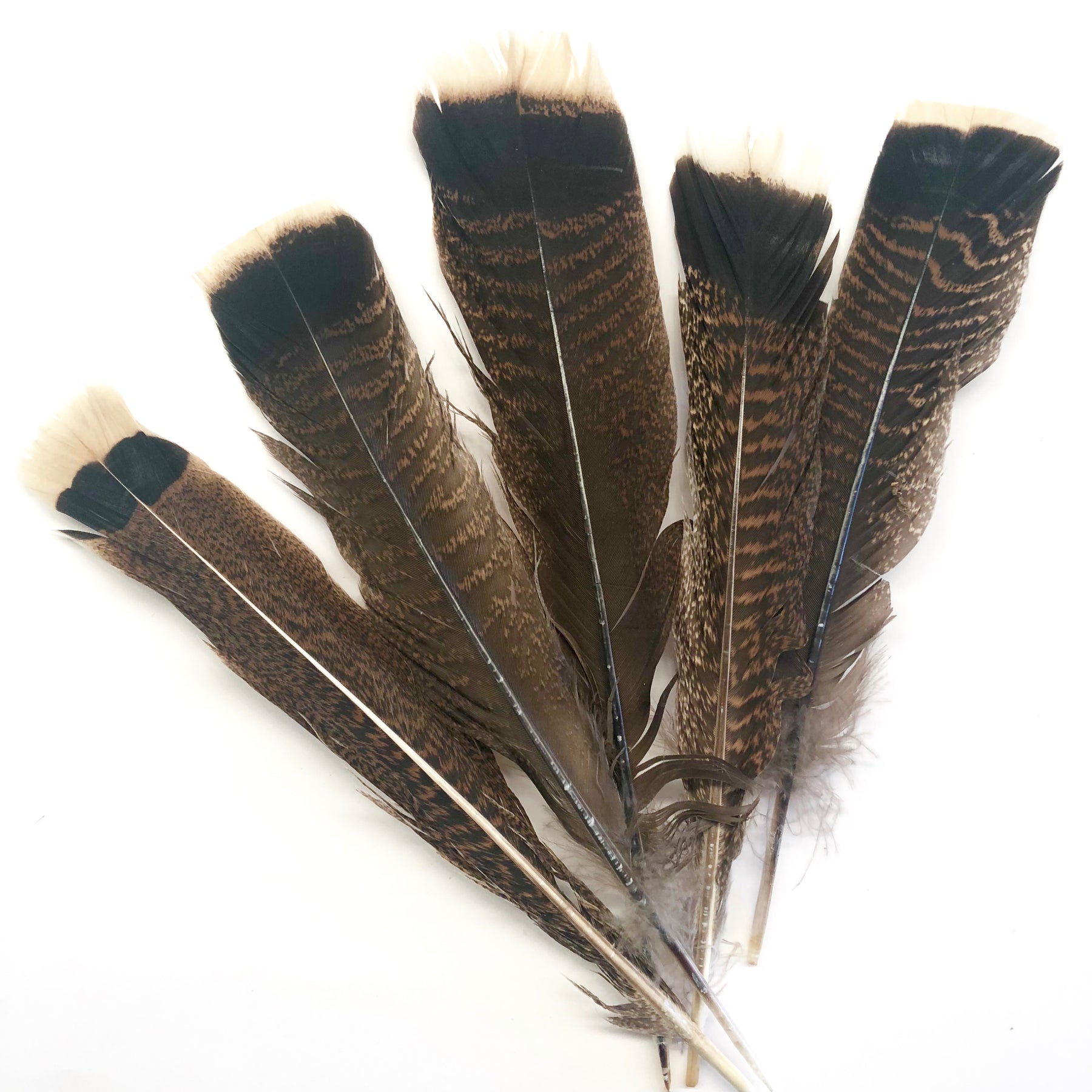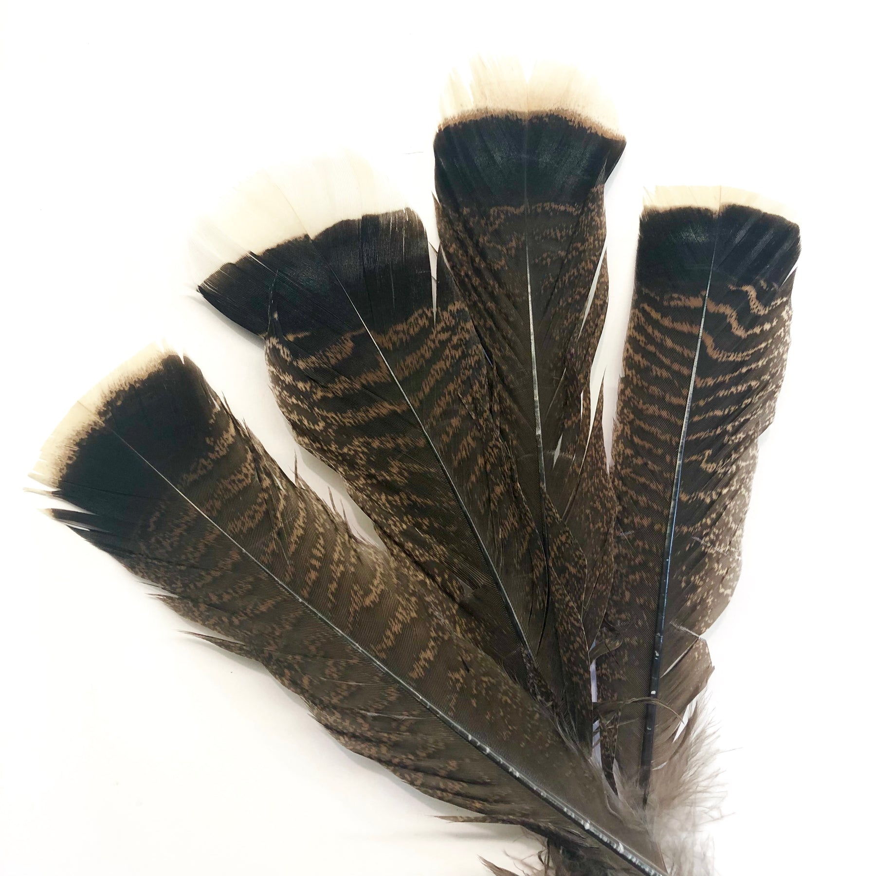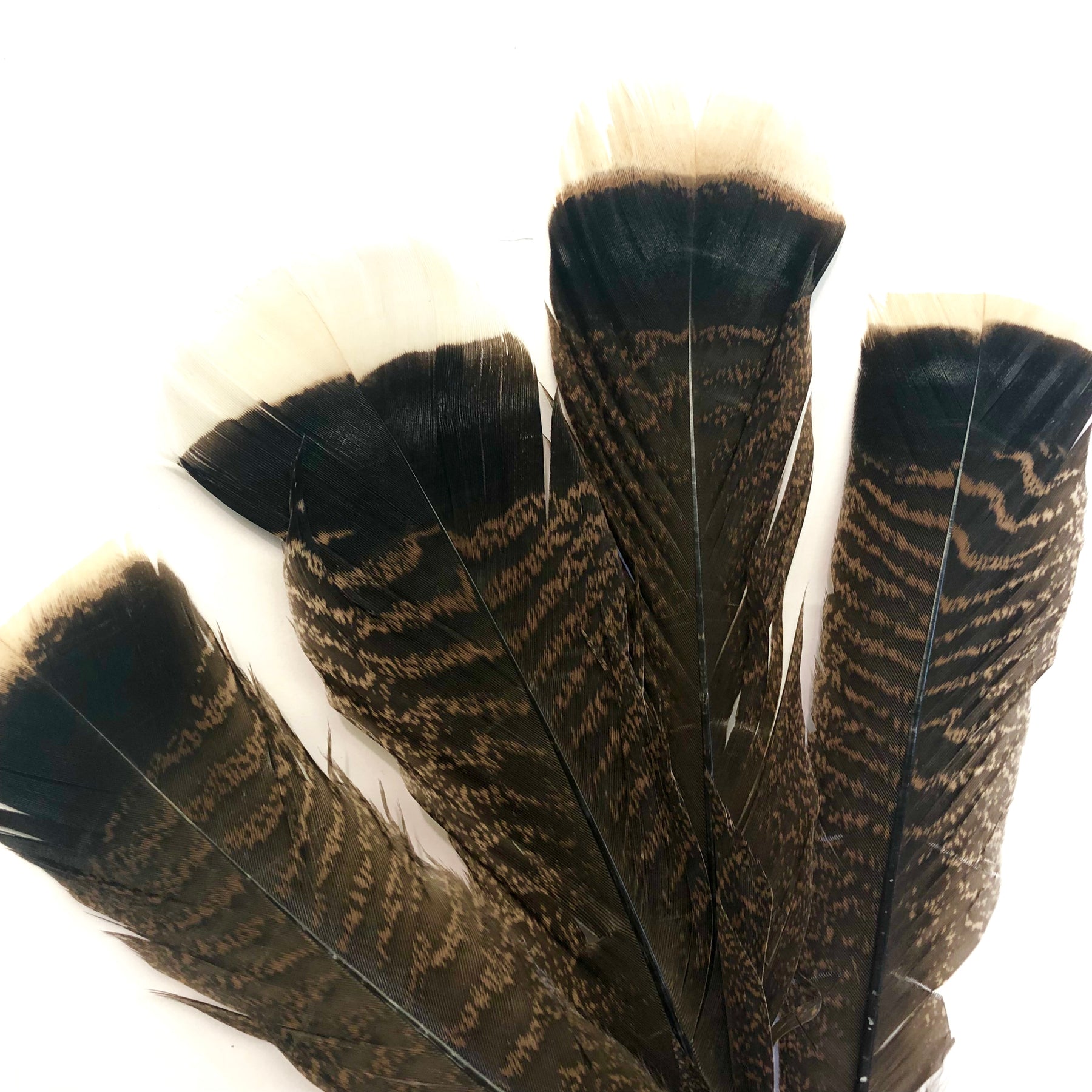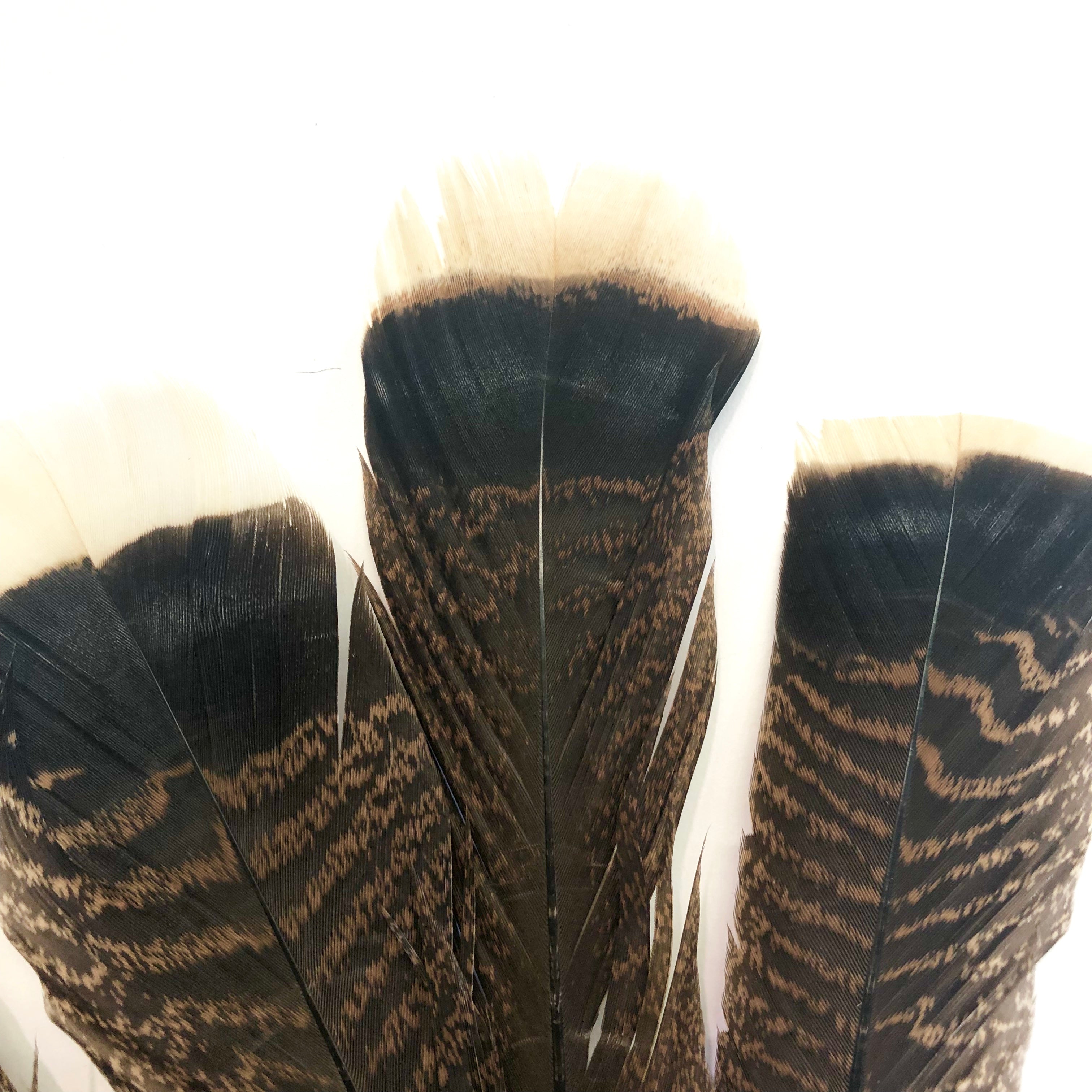 Beautiful bronze turkey tail feathers These are natural brown and black mottled feathers with a light tan tip, really hard to find so quantities are limited, Superb quality.