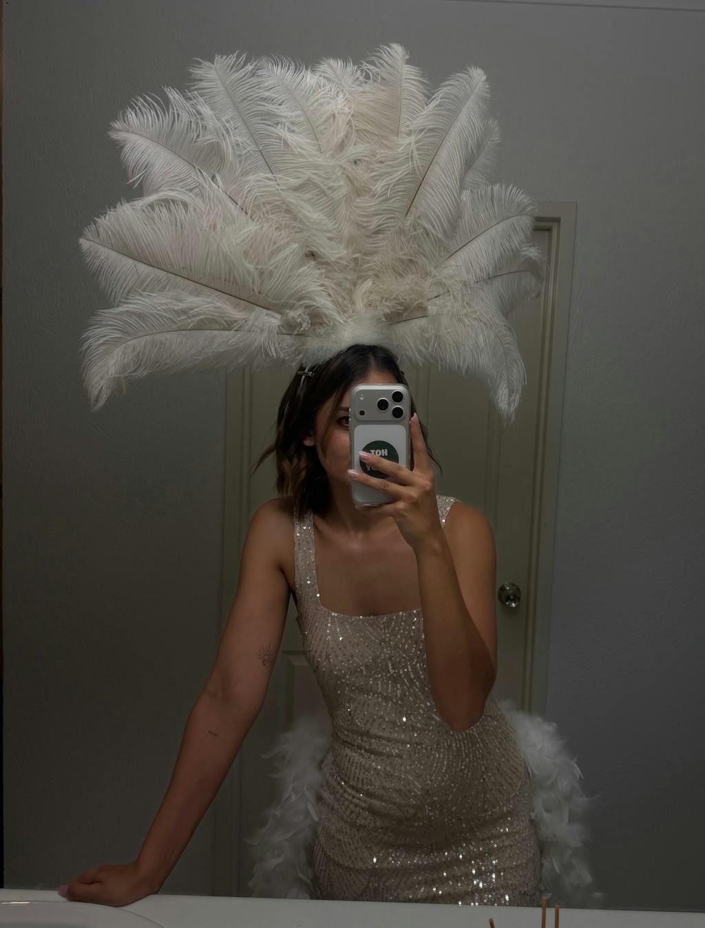 Ostrich Feather Drab Carnival Showgirl Costume Headdress